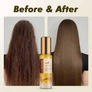 This ‘liquid gold’ nourishes and moisturises each hair fibre from the inside, improving its elasticity, it stimulates the growth of healthier hair, applied to the scalp, and it also acts as a protective shield against damage caused by UV rays and other environmental factors. It also prevents split ends while reducing hair breakage.
