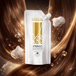 L’Oréal Xtenso Oleoshape combines a Smoothing Cream (Step 1) and Neutralizing Lotion (Step 2) enriched with Oil-Trio Technology to restructure hair bonds while infusing nourishing oils. Ideal for naturally curly or unprocessed hair, it gently relaxes curls and waves for a straight, silky finish while maintaining the hair’s natural moisture balance.